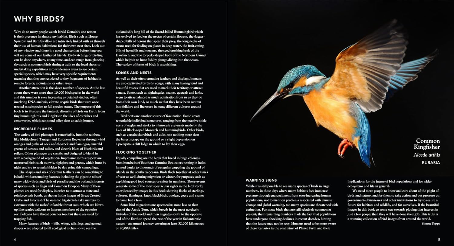 This book is packed with stunning photography of more than one hundred of the world’ s most amazing bird species. While some species can be seen in our gardens, others have very specific requirements meaning that they are restricted to tiny fragments of habitat in remote forests or mountains. The images in this book celebrate the astonishing variety and beauty of birds, from swans and flamingos to kingfishers and hummingbirds. And the images have stories to tell, from spectacular courtship displays by frigatebirds, cranes and birds of paradise to specialized feeding adaptations such as the barely believable beak of the Sword-billed Hummingbird. Amazing shots of birds from around the world, including portraits, action pictures, mind-boggling images of flocks, and more!