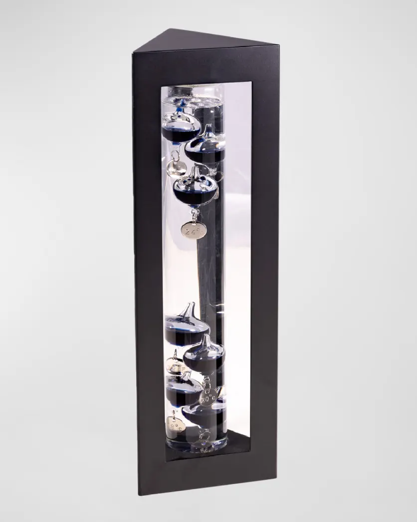 The Galileo Thermometer can be used to demonstrate temperature’s affect on density. Crafted from rich wood and adorned with intricately designed glass balls, this Galileo thermometer exudes a sense of timeless elegance. The precisely weighted glass balls rise and fall within the liquid-filled tubes to indicate the temperature with remarkable accuracy, making it an educational and engaging piece. The combination of wood, glass, and precision craftsmanship ensures that you’re investing in a high-quality piece that will retain its beauty and functionality for years to come.